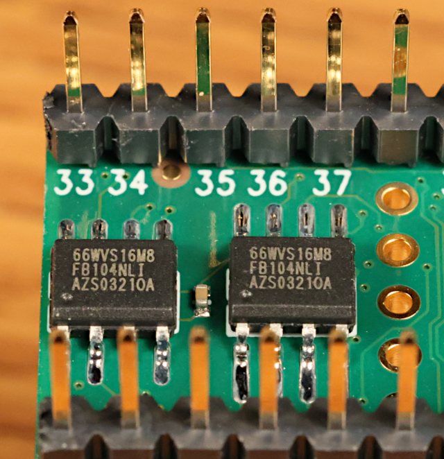 You can solder 1 or 2 of these 16MB chips to the bottom side of Teensy 4.1 to expand its memory. ProtoSupplies also sells Teensy 4.1 with these chips soldered.