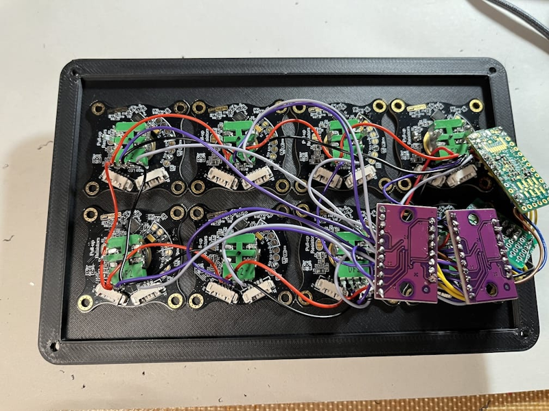 Gero’s controller exceeds the typical resolution of MIDI control messages by sending two 7-bit messages to indicate a “course” and “fine” value, allowing 16384 values, instead of the typical 128. Mainstream DAWs like Ableton, Logic, and Bitwig support 14-bit CCs, although most hardware does not. Gero also recommends re-greasing the pots as part of the assembly process, for an even better experience. And optional LED rings make it even fancier!