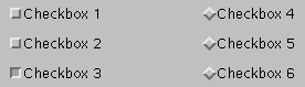 Besides the Checkbox methods shown above, Checkbox has two additional methods you might want to use:Panel p1, p2; Checkbox cb1, cb2, cb3; //independent checkboxes Checkbox cb4, cb5, cb6; //only one of these three can be selected CheckboxGroup cbg; cb1 = new Checkbox(); cb1.setLabel("Checkbox 1"); cb2 = new Checkbox("Checkbox 2"); cb3 = new Checkbox("Checkbox 3"); cb3.setState(true); . . . cbg = new CheckboxGroup(); cb4 = new Checkbox("Checkbox 4", cbg, false); cb5 = new Checkbox("Checkbox 5", cbg, false); cb6 = new Checkbox("Checkbox 6", cbg, false);getCheckboxGroup()andsetCheckboxGroup(). Besides the single CheckboxGroup constructor used in the code example, CheckboxGroup also defines the following methods:getCurrent()andsetCurrent(). These methods get and set (respectively) the current selected Checkbox.