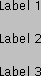The Labelclass provides an easy way of putting text in your program's GUI that the user can't edit or select. Labels are aligned to the left of their drawing area, by default. You can specify that they be centered or right-aligned by specifying Label.CENTER or Label.RIGHT either to the Label constructor or to the