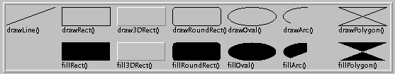 The shape-drawing example from before could be improved by choosing a font that's smaller than the usual default font. The following example does this and also enlarges the shapes to take up the space freed by the font's smaller height. Below is the improved applet (here is its code):