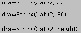 drawBytes(),drawChars(), ordrawString()methods.Here is an example of the code that draws a string to the screen: