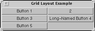 Above are pictures of two programs, each of which displays five buttons. The Java code for both programs is almost identical. So why do they look so different? Because they use different layout managers to control the layout of the buttons.