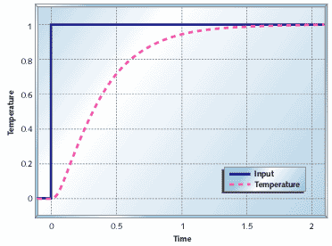 Figure 14: Heater with PI control. The kink at time = 2 is from the external disturbance