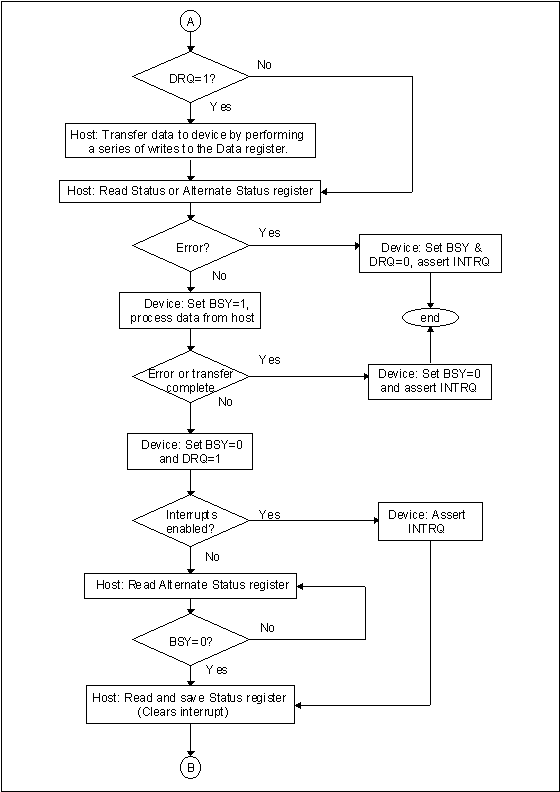 Data transfers may be accomplished in more ways than are described below, but these sequences should work with all known implementations of ATA devices.