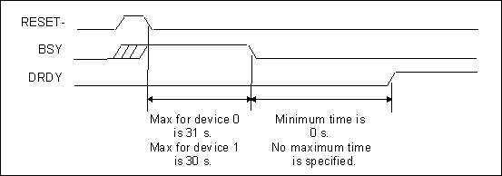 b) Device 0 sets the BSY bit no later than 400 ns after RESET- is negated;