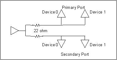 · For dual port implementations, terminate signals as shown in figure C.15. These resistors should be placed as close to the ATA connector of that port as possible.