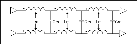 First the forward coupling components are examined. The voltage induced in the second transmission line is proportional to the coupling coefficient, the inductance, and the rate of change of current in the primary side. This is a negative voltage: a positive current spike in the primary line results in a negative voltage spike in the secondary line.