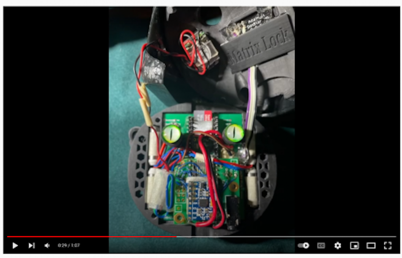Contained in the 3d-printed shell is a Teensy 4.1 and Audio Adaptor Board, as well as haptic motors and drivers, some extra RAM, and an 8×8 RGB LED matrix. Using Teensy’s Ethernet, or USB serial via Chrome, the bot transmits a stream of visemes (speech sounds) to a web site, while also displaying them on the matrix, resulting in a lipsync-like representation of speech audio.